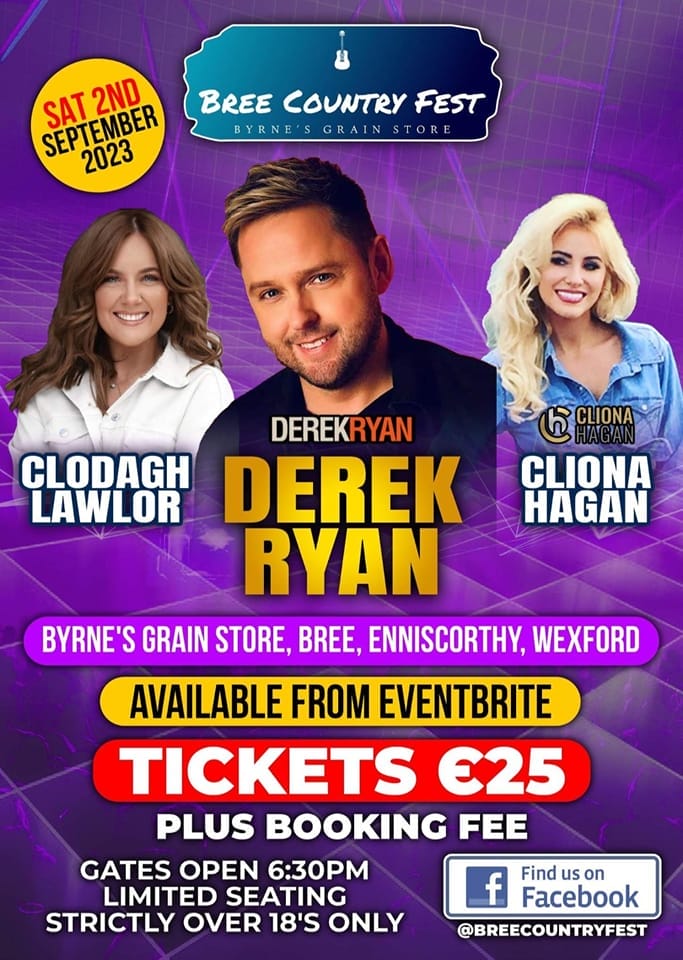 Derek Ryan headlines Bree Country Fest (Sat 31st August)