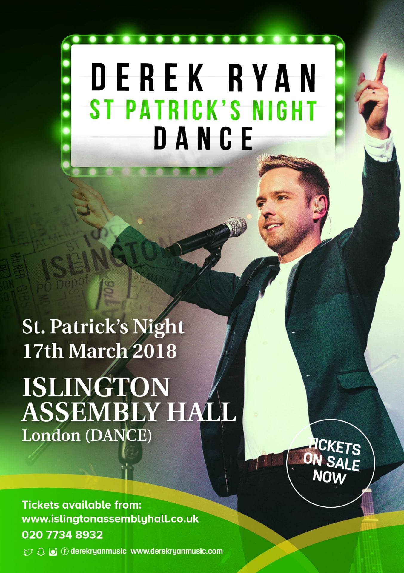 Derek will return to Islington on 17th March 2018 for a special night of dancing! The old London dance halls hold a special place in people’s hearts and Derek is excited to bring back the magic for one night only! There will be some special guests along the way, on sale now! https://islingtonassemblyhall.co.uk/events/derek-ryan-170318/