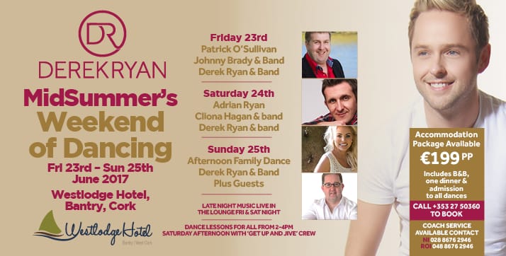This Summer Derek returns to Bantry in Co. Cork, for a jam packed weekend of country music and dancing! West lodge Hotel welcomes Derek and his band back, amongst a number of special guests from Patrick O’Sullivan and Johnny Brady to Cliona Hagan.