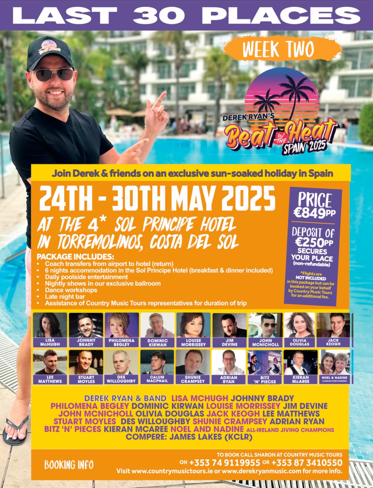 Outside of Rep of Ireland: 00353 74 91 19 955 / mob. 00353 87 341 0550 OR email: sharon@countrymusictours.ie